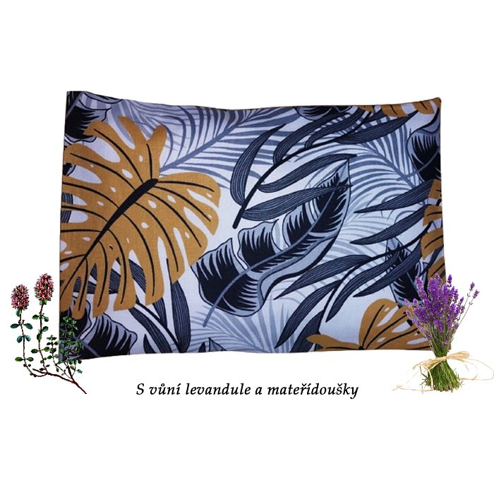 - V jednobarevném obalu jsou zašité pohankové a špaldové slupky a sušený květ levandule a mateřídoušky (obal 100% bavlna), horní -barevný potah je sundávací (100% bavlna ) a lze jej prát.