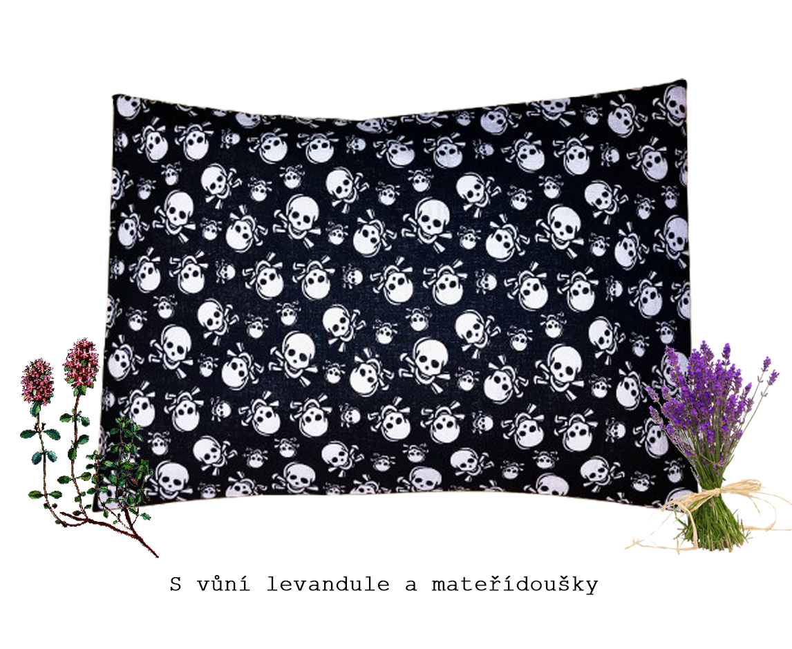 Bylinný polštářek dobrou noc - mateřídouška a levandule lebky