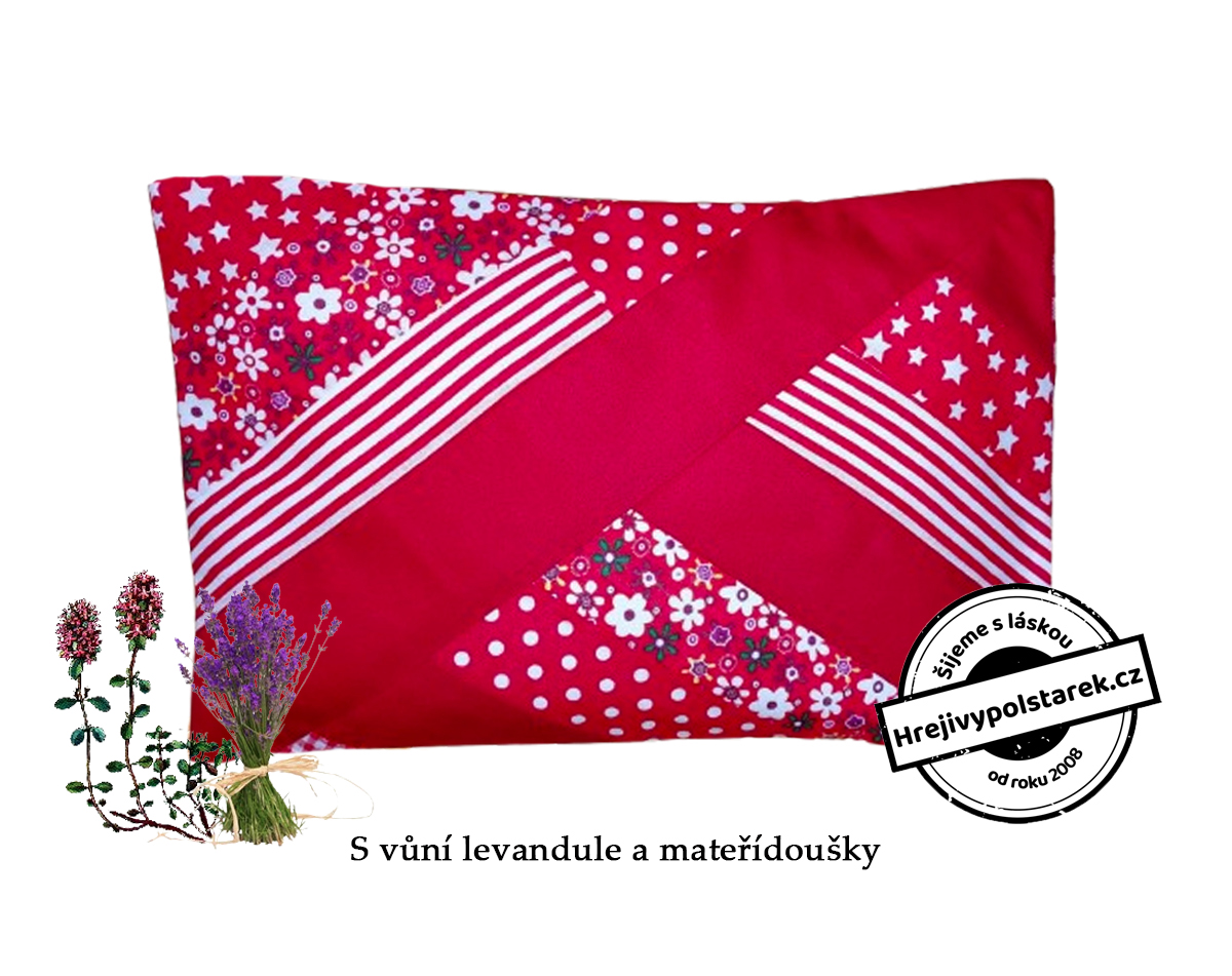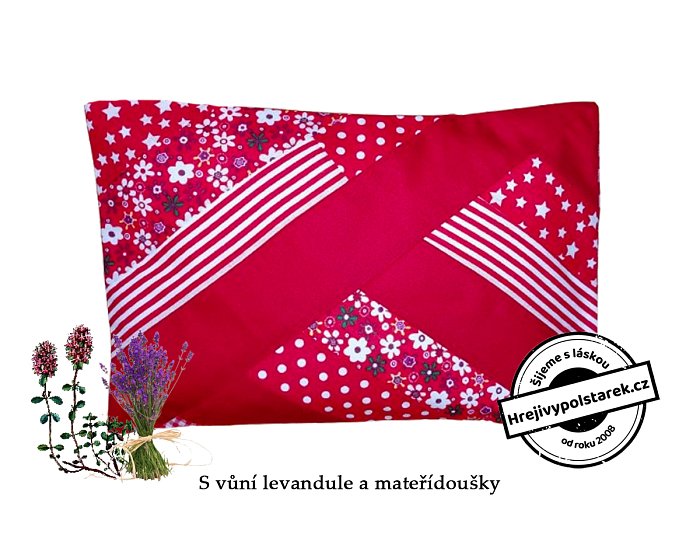 - V jednobarevném obalu jsou zašité pohankové a špaldové slupky a sušený květ levandule a mateřídoušky (obal 100% bavlna), horní -barevný potah je sundávací (100% bavlna ) a lze jej prát.