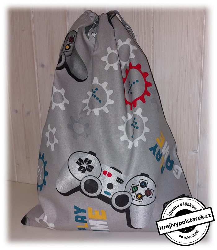 Látkový pytlík na bačkory, tělocvik.... hráč šedý