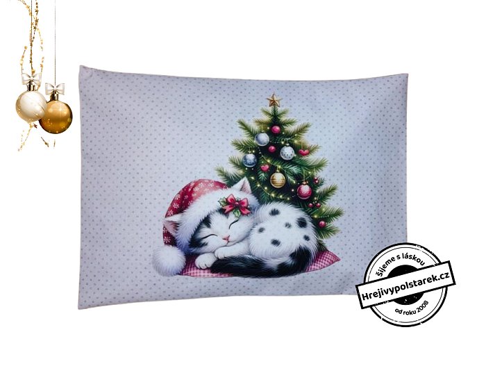 Nahřívací pohankovo / špaldový polštářek Vánoční kočka