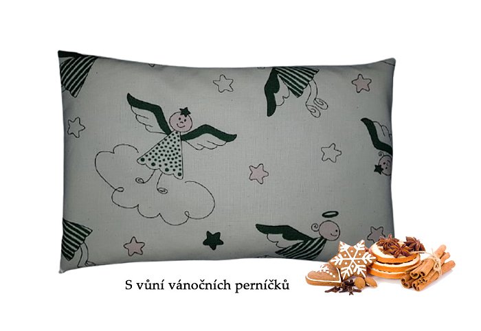 - Výplň - 100% pohankové slupky a špaldové slupky + směs na vánoční perníčky (skořice, koriandr, badyán, nové koření, hřebíček, anýz, muškátový ořech i květ, fenykl)